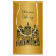 Aqui temos uma bolsa de presente adorável que apresenta três homens sábios ornamentais em marinho sobre um fundo de ouro metálico. As palavras "Bênçãos de Natal" podem ser removidas ou personalizadas para o destinatário. Esta bolsa é compatível com outros sacos de presentes, papel de embrulho, papéis de tecidos e um cartão de saudação! Vai fazer uma adição perfeita ao seu presente para os seus amigos e família nesta temporada de férias.