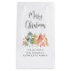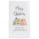 Elegante sacola de presente de Natal corporativo para seus clientes e funcionários com uma moderna aquarela de árvores de pinheiro em verde, vermelho, dourado e terracota, "Feliz Natal" em uma fonte estilosa e o nome da sua empresa em tipografia simples.
