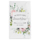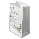 Essas elegantes bolsas de presente para o jantar de ensaio apresentam flores cor-de-rosa acentuadas com folhas verdes e galhos de salgueiro aqua sob um quadrado branco. "Nosso para sempre começa amanhã", juntamente com os nomes do casal e a data do casamento, estão apresentados no centro. Este design complementa os meus convites de casamento e chá de panela "Blush Pink Rose Floral Bouquet". Os acentos florais e de folhagens funcionariam perfeitamente com qualquer jantar de ensaio ao ar livre com tema rústico ou shabby. Seriam a maneira perfeita de presentear um presente especial para a comitiva de noiva e os pais no jantar de ensaio.
