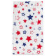 4 de julho e mais! Esta bolsa de presente é mostrada numa impressão de estrelas festivas patrióticas. Impressão licenciado brilhante mostrado