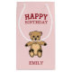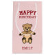 O saco de presentes para crianças tem um ursinho de pelúcia marrom giro em um fundo rosa. Saco de presente personalizável - mude o nome. Você também pode mudar o texto e usar a bolsa para qualquer outra ocasião.