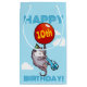 Um gambá engraçado numa bolsa de presente de aniversário. Use o texto "Personalizar este modelo" para ajustar a idade ou "FELIZ ANIVERSÁRIO!" e crie um item exclusivo e personalizado. As mudanças de texto são refletidas em ambos os lados. Faça um presente de aniversário especial com este saco de presentes, com um opositor bonito em um chapéu de festa listrado, flutuando em um grande balão vermelho enquanto soprava uma estrela derramada.