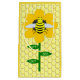 Esta bolsa de presente fantástica apresenta uma imagem gráfica de um belo abelhão amarelo com listras, olhos, antenas e pernas pretas. Tem asas bonito, azuis e brancas. A abelha está sentada no meio de um girassol amarelo-ouro. A flor tem um caule verde e três folhas. A mensagem "dia feliz das abelhas" aparece espalhada pelas três folhas. O fundo é composto por um padrão amarelo de mel.