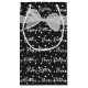 Texto de aniversário feliz e arco branco em fundo bolinhas preto e branco.
