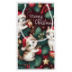 Esta bolsa de presente de Natal é perfeita para amantes de gatos. Ele apresenta três gatinhos adoráveis vestindo chapéus de Papai Noel e brincando com ornamentos. O fundo é verde festivo com bagas vermelhas e sotaques de ouro. Este saco trará um pouco de alegria e gentileza para o seu presente.