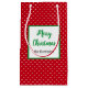 Sacola Para Presentes Pequena Feliz Natal, nome, pontos suíços vermelhos e branc