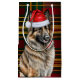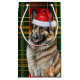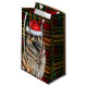 Amantes de cães adorarão receber ou dar este saco de presentes de feriado bonito e engraçado com um adorável cão belga Tervuren num chapéu de Papai Noel, em um fundo sazonal vermelho, dourado e verde.