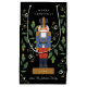 Ilustração original de um soldado nutcracker clássico com holly e mistério no fundo. Texto editável e cor de fundo