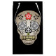 Dia Artístico do Crânio Morto (calavera) com flor vermelha e padrão cardíaco na testa.