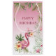 Um flamingo floral rosa e uma folhagem exótica em fundo de gradiente rosa