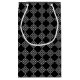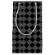 Esta bolsa de presente de papel é mostrada em um impressão de ouros pretos. Personalize este saco ou comprar como está.