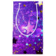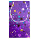 Sacola Para Presentes Pequena Fundo de folhas roxas com estrelas