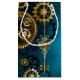Turquesa, texturizada, fundo steampunk com latão e engrenagens douradas, chave prateada e relógio. Estilo Steampunk.