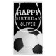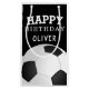 Bola de Futebol Feliz Aniversário do Esporte Gift Bag com Nome. O design tem uma bola de futebol, uma bola de futebol e um feliz desejo de aniversário em cores preto e branco. Personalize com seu nome e faça um saco especial de presente pessoal para um menino ou uma garota.