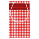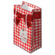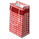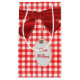 Gingham vermelho e branco com arco e etiqueta. Personalize o nome do destinatário na etiqueta oval.