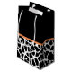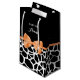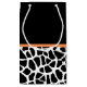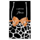 Uma bolsa de presente de impressão de girafa branca e preta com uma fita laranja fofa amarrada num arco de na moda. Personalize este design de impressão de animais modernos adicionando o nome da garota da festa. Imagem impressa plana, não arco real.