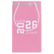This gift bag is for the Grad in your life, shown in pink with a diamond sparkle accent and a senior class of print.