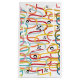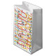 Esta bolsa de presentes tem um design moderno do século médio de rabiscos correndo verticalmente em cores retrógradas com estrelas pretas e círculos espalhados sobre a design.