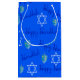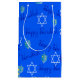 Esta bolsa de presentes tem uma design de sonho Chanucá, Estrela de David, e "Feliz Chanucá" em um fundo azul. Excelente para a estação.