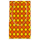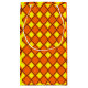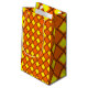 Esta bolsa de presentes tem um design de diamantes amarelo sólido de diamantes dentro marrom dos anos 70 em um campo de laranja.