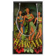 Hawaii Hula - Esta impressão de arte inspirada em vintage mostrando dançarinos de hula e palmeiras.