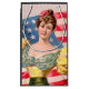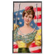 Esta moça de bandeira americana, Lady Liberty, foi uma peça publicitária do final dos anos 1800.