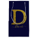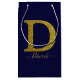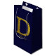 Monograma - letra de Solteiro na fonte de estilo de brilho simulada. Montado em cima de uma meia-noite azul, Hex#080837. Personalize com seu nome ou mensagem na fonte de script ouro amarelo.