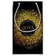 O saco de presentes de Ano Novo apresenta um padrão circular de brilho de luzes douradas contra preto rico, criando um quadro circular para a indicação do ano. A imagem se repete em ambos os lados do saco para que você possa mudar a mensagem em ambos os lados, independente do outro. É versátil o suficiente como um saco de propósitos para uma festa de férias de escritório, festa de aniversário, casamento de Ano Novo ou festa de coquetel de feriado. Disponível com produtos correspondentes.