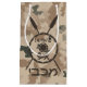 Uma representação marrom militar "subjugada" do escudo de um Maccabee e duas lanças sobre o fundo do camo do deserto. O escudo é enfeitado por um leão e o texto lendo "Yisrael" (Israel) no alfabeto paleohebraico. O texto hebraico moderno que lê "Maccabee" também aparece. Os Macabeus eram rebeldes judeus que libertaram Judeia do jugo do Império Seleúcio. Chanukkah não é apenas um festival de inverno-médio com velas e iguarias fritas, ela celebra uma vitória militar, e garante a liberdade religiosa, sobre o Império Seleúcio. Além disso, a revolta foi uma guerra civil envolvendo aqueles judeus que eram leais ao G-d e aqueles que tinham adotado o Hellenismo dos Seleucids.