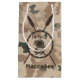 Uma representação marrom militar "subjugada" do escudo de um Maccabee e duas lanças sobre o fundo do camo do deserto. O escudo é enfeitado por um leão e o texto lendo "Yisrael" (Israel) no alfabeto paleohebraico. O texto em inglês que lê "Maccabee" também é exibido. Os Macabeus eram rebeldes judeus que libertaram Judeia do jugo do Império Seleúcio. Chanukkah não é apenas um festival de inverno-médio com velas e iguarias fritas, ela celebra uma vitória militar, e garante a liberdade religiosa, sobre o Império Seleúcio. Além disso, a revolta foi uma guerra civil envolvendo aqueles judeus que eram leais ao G-d e aqueles que tinham adotado o Hellenismo dos Seleucids.