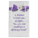 Citando a mãe com fita de bolinhas púrpura e branca e flor de cosmos em madeira de celeiro rústico de cinza clara. O texto pode ser editado.
