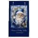 Um belo saco de Natal azul e branco com o Pai Natal a azul. O texto é "Tenha um Natal Holly Jolly". Dê seus presentes elegantes nesta época de Natal