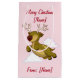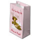 Feliz natal, Reinado Voador, adorável e personalizado saco de presentes. Raio voador sorridente com texto que diz: "Feliz Natal" com um lugar para você adicionar um nome ou nomes; e "de" com um lugar para adicionar nome ou nomes. No verso está o texto que você pode personalizar que diz, "Que seus dias sejam felizes e brilhantes." Adicionamos um fundo cor-de-rosa pálido, mas você pode mudá-lo para ser qualquer cor que quiser. Alterar ou adicionar imagens, texto, cor de fundo.