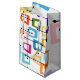 Esta bolsa de presente tem uma design de retângulos que são esticados em uma extremidade em cores ranhuras, laranja, verde, teal, roxo, azul, rosa e amarelo com linhas atômicas que os cruzam.