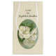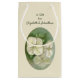 Este saco-presente é embelezado em ambos os lados com trabalho de arte em cores pastel macio, mostrando três florescimento de hidrangea de folha branca cremosa com botões acentuados em verde junto com texto personalizável.