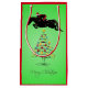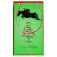 O presente de salto do Natal do cavalo ensaca o saco do presente do Natal do divertimento para o equestrian da ligação em ponte do caçador. O cavaleiro está vestindo um chapéu do papai noel e está saltando sobre uma árvore de Natal bonito com o Feliz Natal do cumprimento.