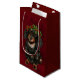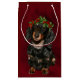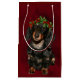 O dachshund de cabelos compridos preto e tan bonito dons alguns ramo do azevinho para obter no saco feito sob medida pequeno- do presente do Natal dos amantes do cão do espírito do Natal