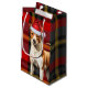 Amantes de cães adorarão receber ou dar este saco de presentes de feriado bonito e engraçado com um adorável Basenji vestindo acessórios festivos em uma xadrez em tons vermelhos e verdes de feriado.