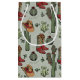 Esta sacola festiva de Natal apresenta um padrão de ilustrações ocidentais desenhadas à mão de um pinho com botas de vaqueiro, chapéu de vaqueiro, groselhas, cactos e ornamentos de Natal vintage entre as estrelas e as palavras escritas à mão, "Howdy Christmas". O legante plano verde.