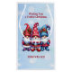 Saco de presente de Natal personalizado. Cores-d'água bonitas, gnomos de inverno brancos em vermelho e azul. Desejando-lhe um Natal festivo cheio de alegria!