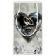Bolsas de presente de casamento elegantes e bonitas que você pode personalizar. Esta bolsa de presente tem uma imagem impressa de uma pintura acrílica de dois anéis de casamento prateados dentro de um coração de cristal. Há também duas lindas rosas brancas no design. Ótima bolsa de presente de casamento para colocar seu presente de casamento dentro para os noivos.
