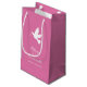 Dê presentes de casamento nesta bolsa especial de presentes de casamento personalizada com sua noiva e o nome do noivo. Perfeito para adicionar um toque personalizado aos presentes de casamento à sua festa de casamento ou ao dar vinho. Um esboço de pomba gráfico simples com duas fitas cor-de-rosa para um saco de presente de arte em branco e cor-de-rosa. Combina com uma variedade de outros produtos de casamento na área de pomba. Personalize/personalize essas bolsas de presentes com sua própria noiva e nomes de noivos e data de casamento de ambos os lados. Arte original e design por Sarah Trett.