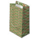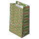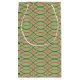 Esta bolsa de presente tem um design de Boho de ondas verdes e laranja num campo verde-claro.