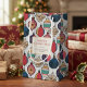 Esta bolsa de presente de Natal rústica e elegante apresenta uma ilustração desenhada à mão de ornamentos de natais vintages a tinta preta contra uma cinza elegante. Personalize com seu próprio Cartões de natal e Nome da Família.