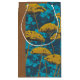 Sacola Para Presentes Pequena Ouro Yseta Garden com fundo azul