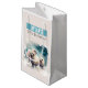 Um saco de presente de aniversário bonito com ovelhas debaixo da neve. Para crianças nasceres de inverno. Personalize este produto adicionando as informações da sua parte.