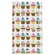 O padrão fino e caprichoso apresenta seis cupcakes diferentes em cores divertidas e vibrantes