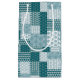 Um Saco de Presente Chinês, com um padrão de trabalho Faux estilo étnico em Teal e White. Parte da coleção Posh & Painterly 'Boho Bazaar', este padrão pode ser facilmente personalizado alterando a direção ou a escala do azulejo padrão para um aspecto completamente diferente.