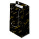 Saco de presente preto com tons de dourado em diferentes tamanhos com o texto celebração em uma fonte manuscrita com glifo. Este saco de presente e design servem para a maioria das ocasiões e celebrações. Este design moderno e minimalista em dourado sobre preto torna-o elegante e exclusivo.
