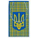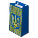 Saco de presente russo da Ucrânia com tartã azul e amarelo / xadrez estilizada com o padrão de cores da bandeira ucraniana com o proeminente Casaco de Braços Tryzub.